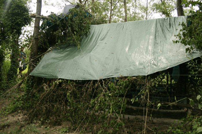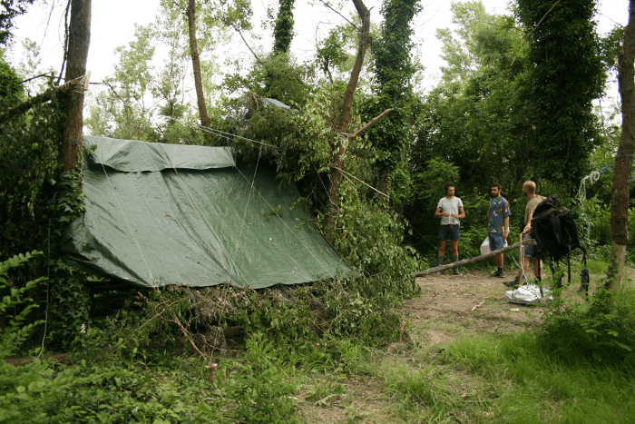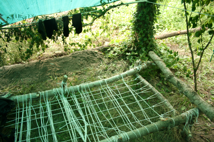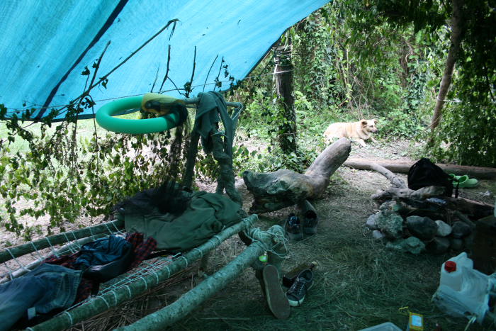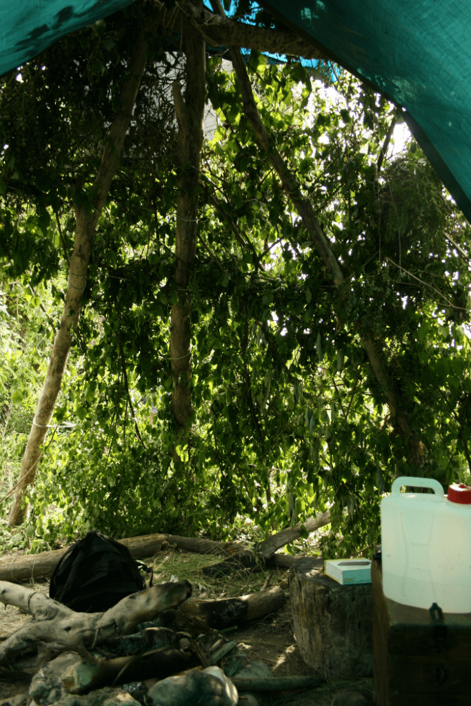 The drive to make it prevented Sam from staying totally focused on the main project, which was to build a shelter. As Roberto was similarly distracted, their shared dwelling place ended up being primarily functional and a response to the conditions that presented themselves over the 10 days of the residency. This responsive, functional aesthetic underpins much of Bunn’s ouvre.