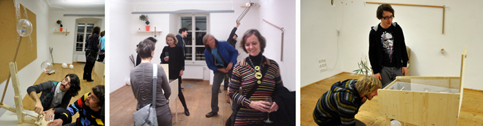 Bunn spent several months at the Salzamt in Linz, discovering the types of ways he could present bouncy balls to an audience. He made some machines, found out some special types of bounces, started to develop obstacles to interrupt the path of the balls, made a model of the room for a micro examination of the angles and did a lot of bouncing. The above video is about that time.