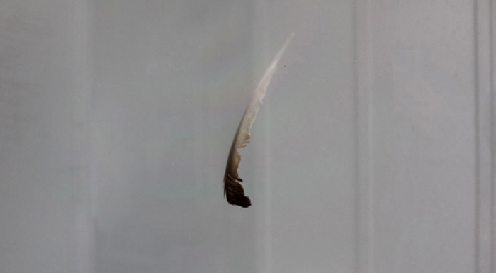 The Smallest Gallery was a window space next to a cafe near the main river in Graz. We built a machine to fill the window with fog, and another machine to rotate a several feathers behind the glass, so that they would brush against the window. The whole system was on a timer, so sometimes the whole ghastly, dripping assemblage would be motionless, on show. And other times there was perfect box of fog, with feathers brushing against the glass from the inside.