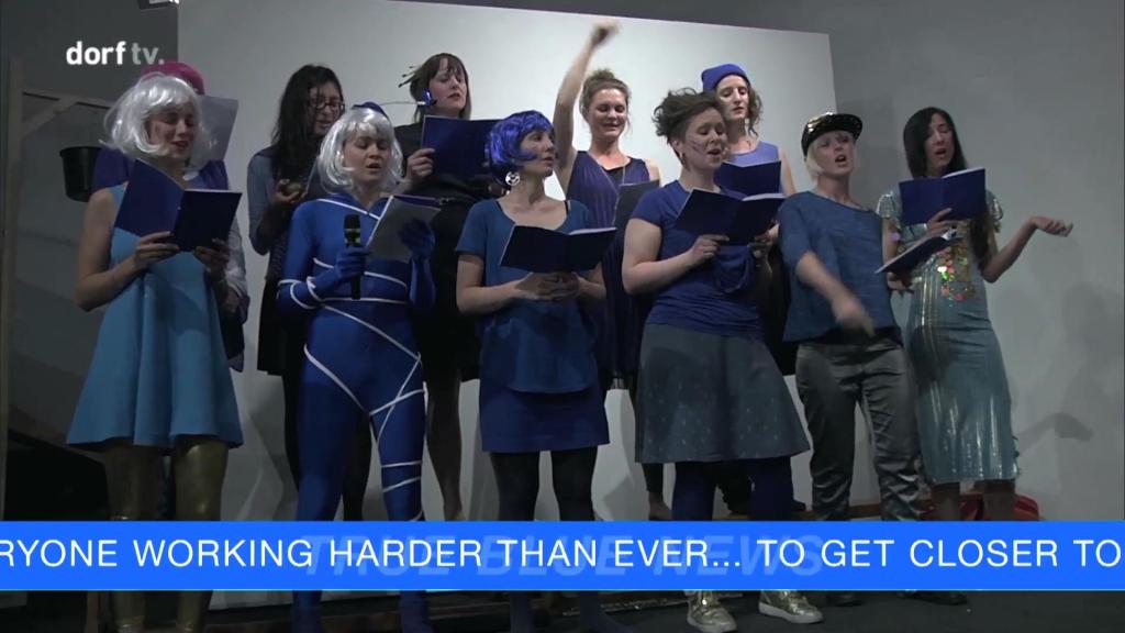 A performative talk-discussion-news-broadcast-concert party thing with eutopic tones.